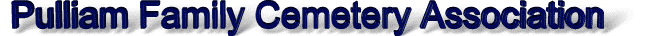 Overview:Thank you for taking the time to visit the Pulliam Family Cemetery Association's website. Our desire is that this website will be a useful tool in keeping association members, the community and other interested parties updated and informed as to the current events and progress of the Pulliam Family Cemetery Association.This web site is established and maintained by thePulliam Family Cemetery Assocationas a service to the families and friends of the descendants of Robert Pulliam (born about 1740, died 26 April 1826) and Martha Eleanor (Nellie) Edwards Pulliam ( born about 1745, died about 1800).While many cemeteries fall victim to neglect and criminal activity, the Pulliam Family Cemetery Association recognizes the importance of preventing this from happening by seeking help from its association members and community volunteers.